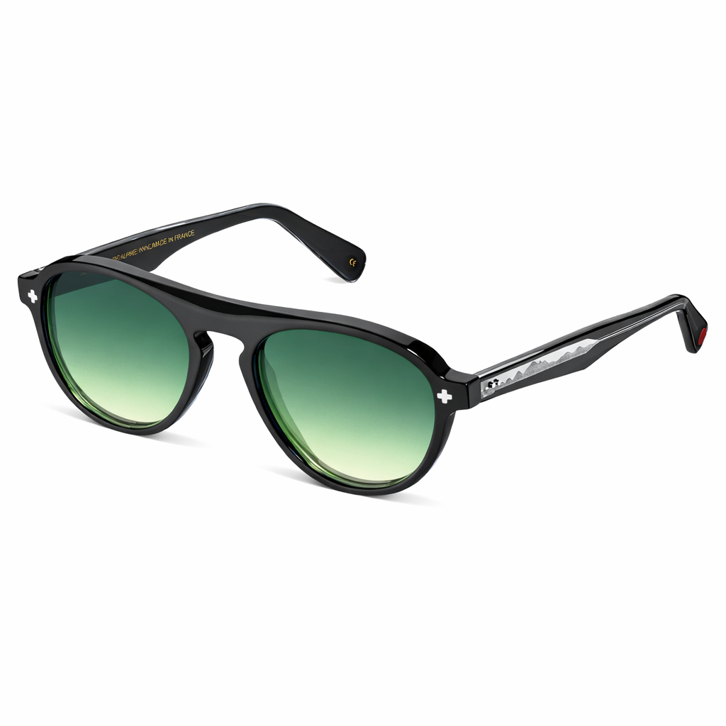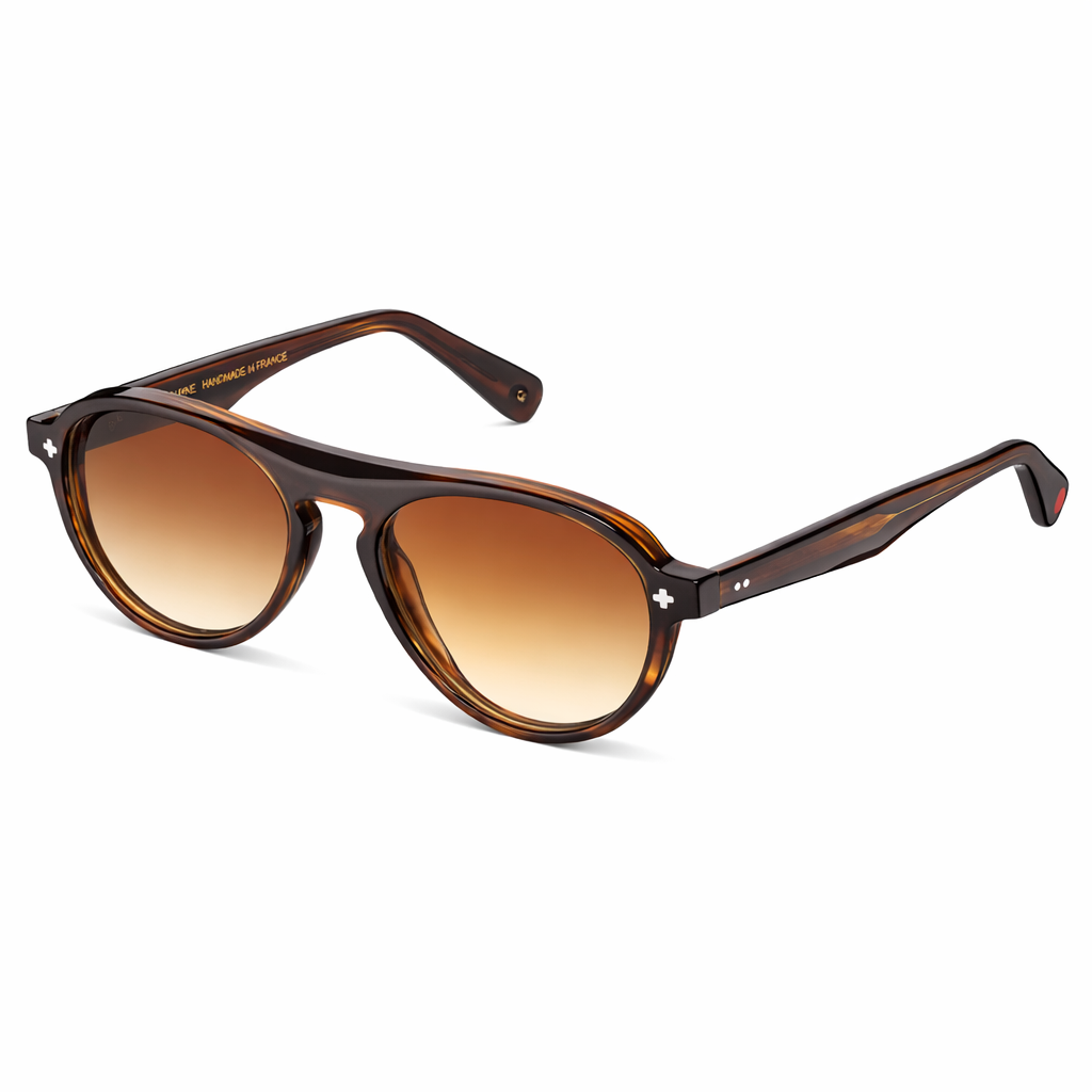 Cette lunette de soleil mixte en acétate est fabriquée à la main en France, en série limitée et numérotée à 150 exemplaires.