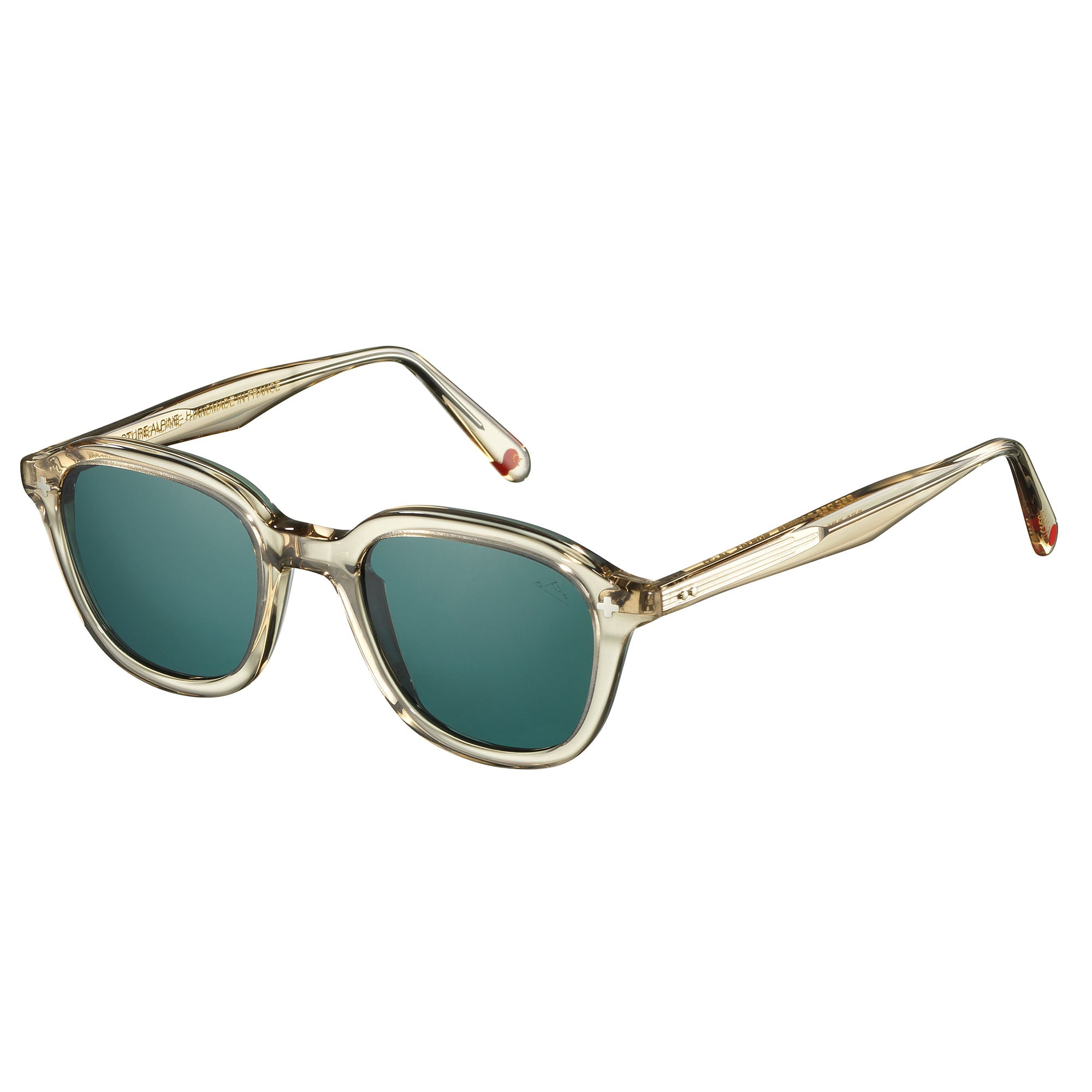 Cette lunette de soleil mixte en acétate est fabriquée à la main en France, en série limitée et numérotée à 150 exemplaires.