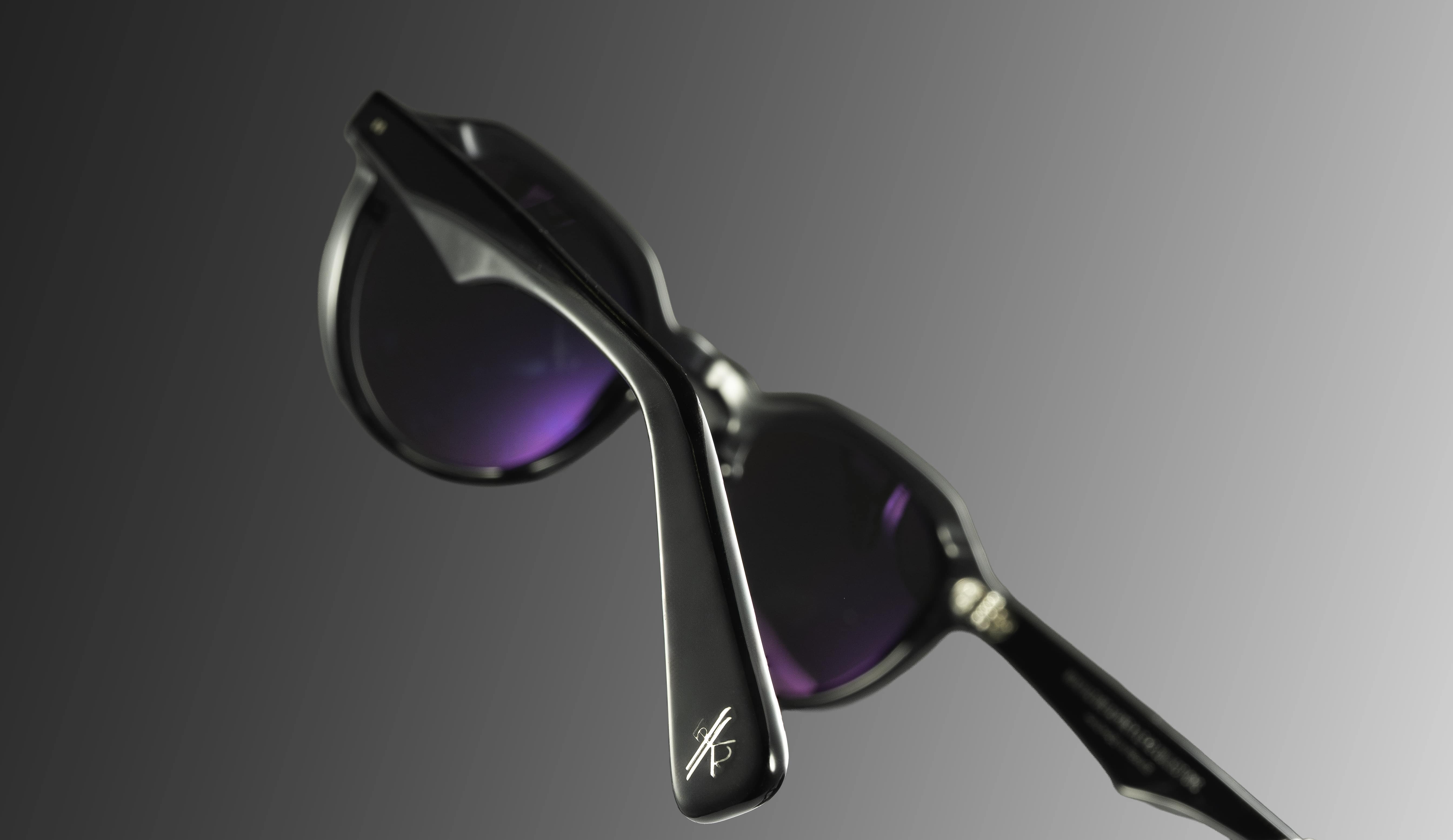 Un subtile mélange d'acétate et de métal avec un traitement Palladium ou Or champagne 21 carats.