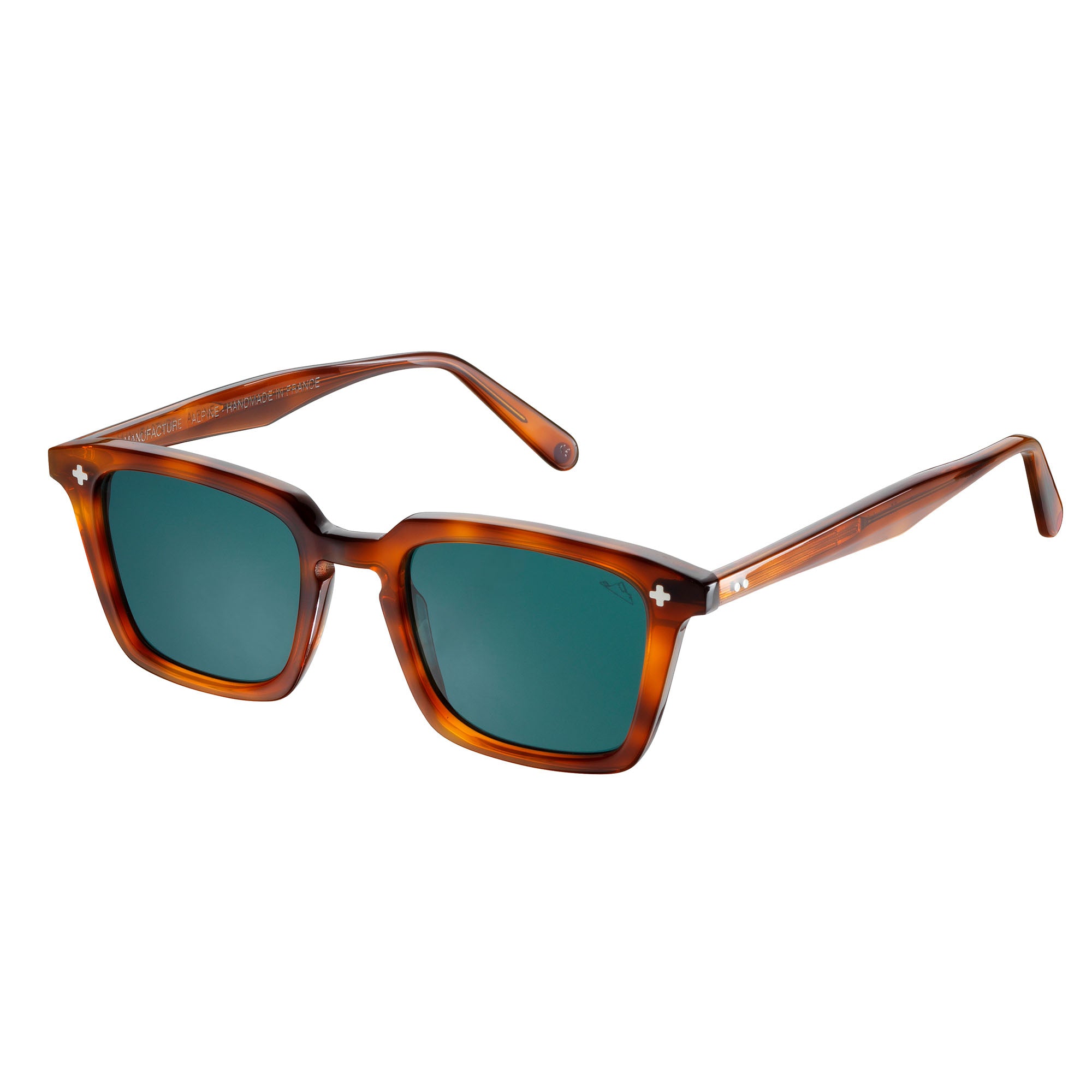 Cette lunette de soleil mixte en acétate est fabriquée à la main en France, en série limitée et numérotée à 150 exemplaires.